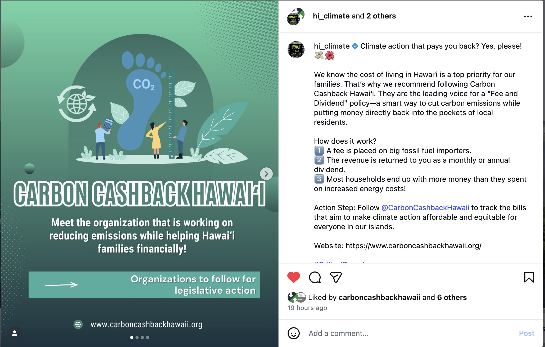 3/11/26 - Instagram - Hawaiʻi Climate Commission - Carbon Cashback Hawaiʻi - Meet the organization that is working on reducing emissions while helping Hawaiʻi families financially!
