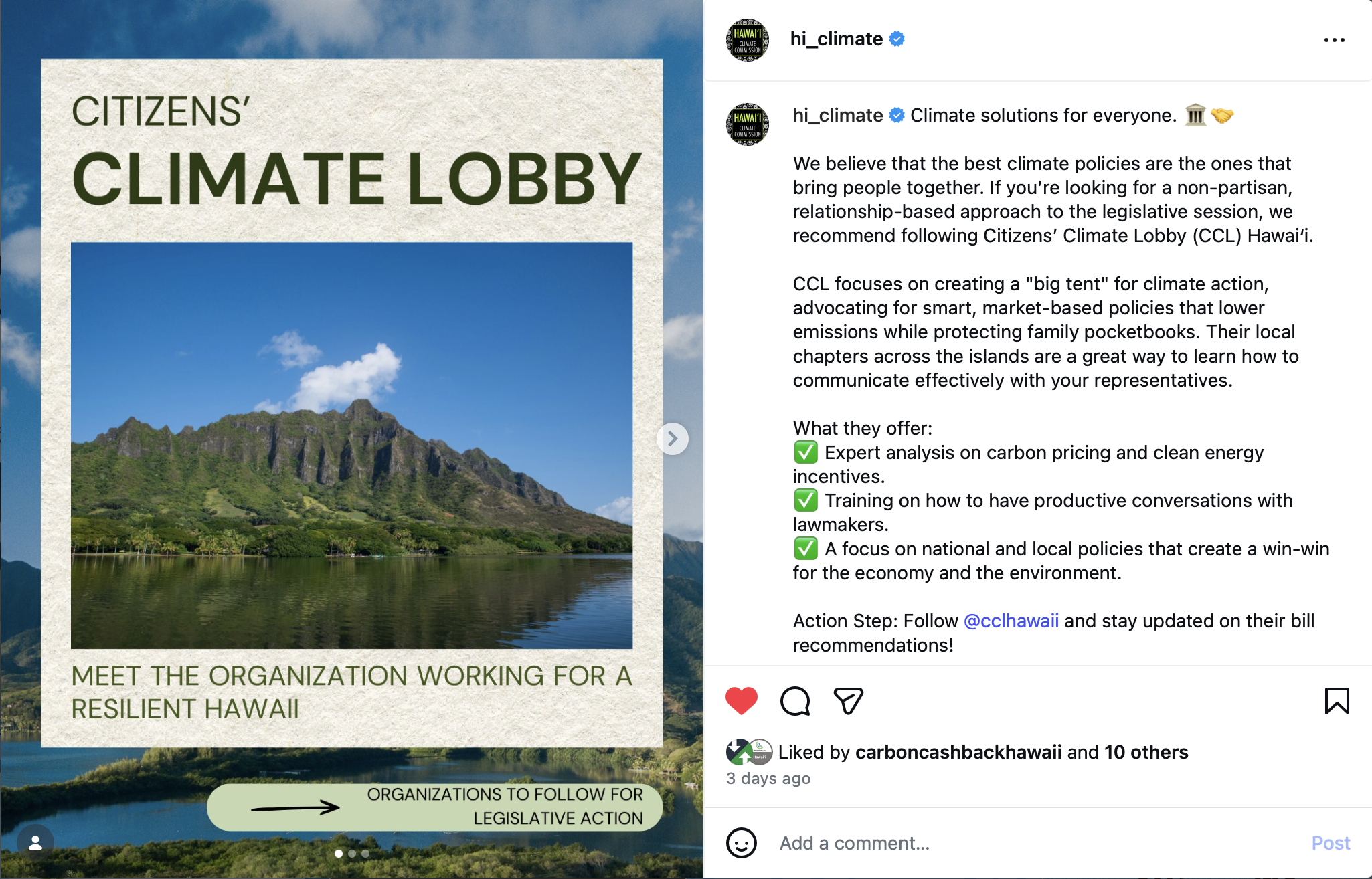 3/1/26 - Instagram - Hawaii Climate Commission - Citizens Climate Lobby - Meet the Organizations Working for a Resilient Hawaii